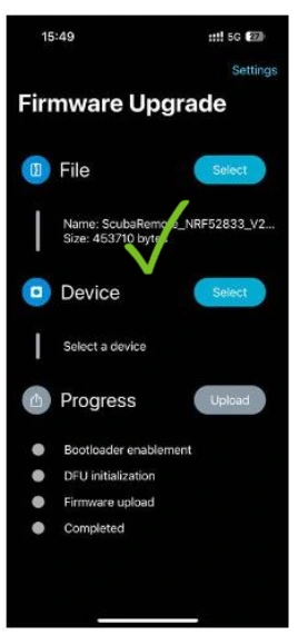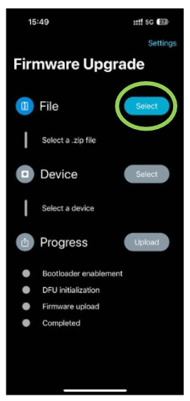 Step 4: Open the DFU App on your phone and Click the „Select” button.